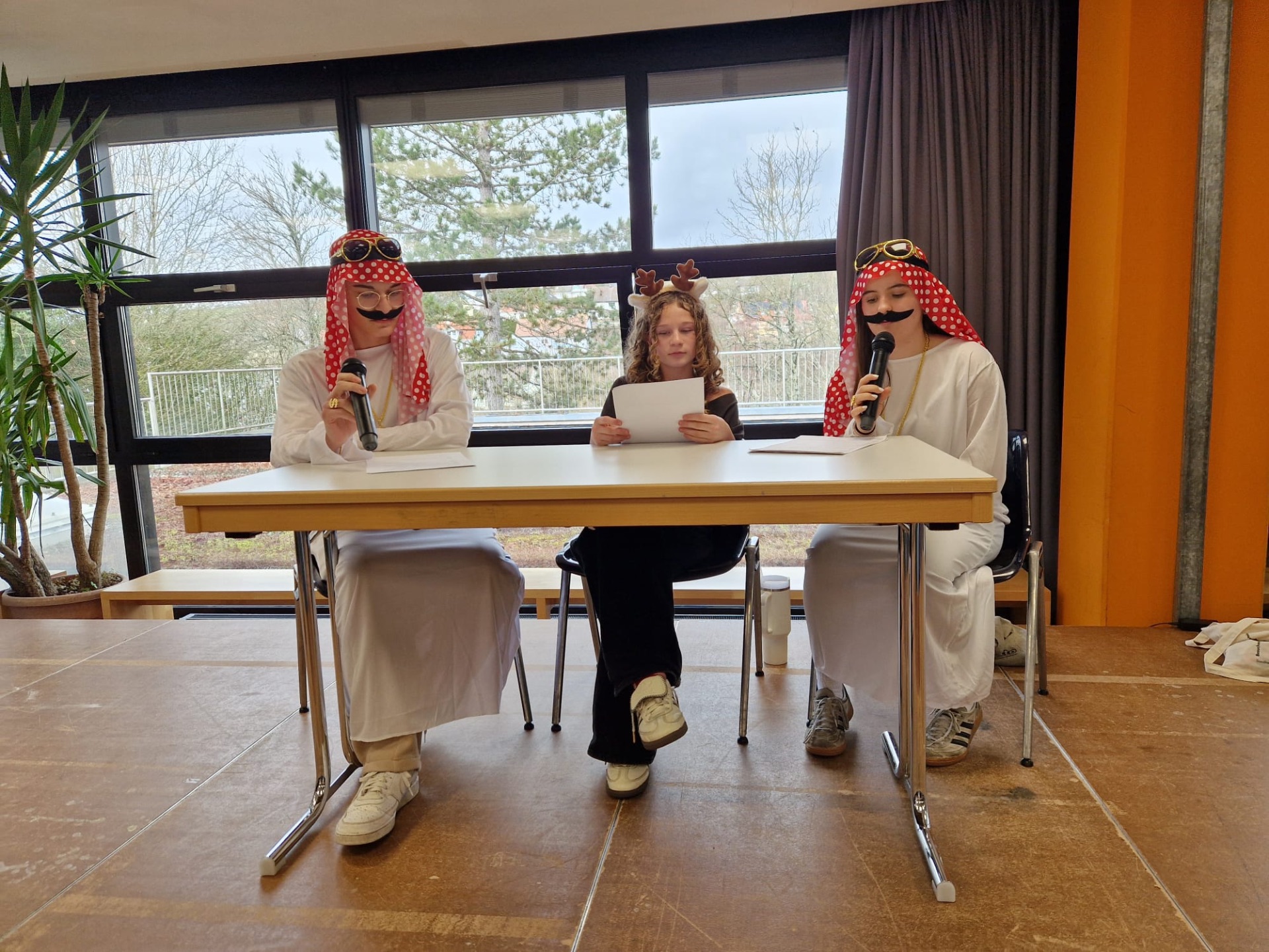 Organisiert wurde die Veranstaltung von der SMV mit Franzi, Michael und Maike in Zusammenarbeit mit den Verbindungslehrkräften Frau Ayad und Herrn Judaschke. Mit viel Engagement stellten sie eine vielseitige Show zusammen, die bei den Schülerinnen und Schülern großen Anklang fand. Ein besonderer Höhepunkt war die Schüler-Büttenrede. Vor allem die Schülersprecher sorgten mit ihrem humorvollen Beitrag für viele Lacher, als sie augenzwinkernd den ein oder die andere Lehrkraft aufs Korn nahmen. Ebenso erfreute sich der traditionelle Kostümwettbewerb großer Beliebtheit. Besonders beeindruckend war die Vielzahl an Klassenkostümen, an denen sich ganze Klassen gemeinsam mit ihren Klassenleitungen beteiligten. Vertreten waren unter anderem Schlümpfe, Schneewittchen mit ihren 17 Zwergen, Zirkusgruppen, Gangster mit gekidnappter Klassenleitung, Safari-Teams, Mafia-Gruppen, Scheichs sowie die Minions. Zwischen den einzelnen Programmpunkten sorgten Musik, Süßigkeiten und Hausaufgabengutscheine für zusätzliche Begeisterung. Viele bekannte Lieder wurden gemeinsam gesungen und trugen zur ausgelassenen Stimmung bei. Die Faschingsfeier war auch in diesem Jahr ein voller Erfolg und zeigte einmal mehr, wie sehr gemeinschaftliche Veranstaltungen das Schulleben bereichern. Ein herzliches Dankeschön gilt der SMV, den Verbindungslehrkräften sowie allen Mitwirkenden für die gelungene Organisation und Durchführung.