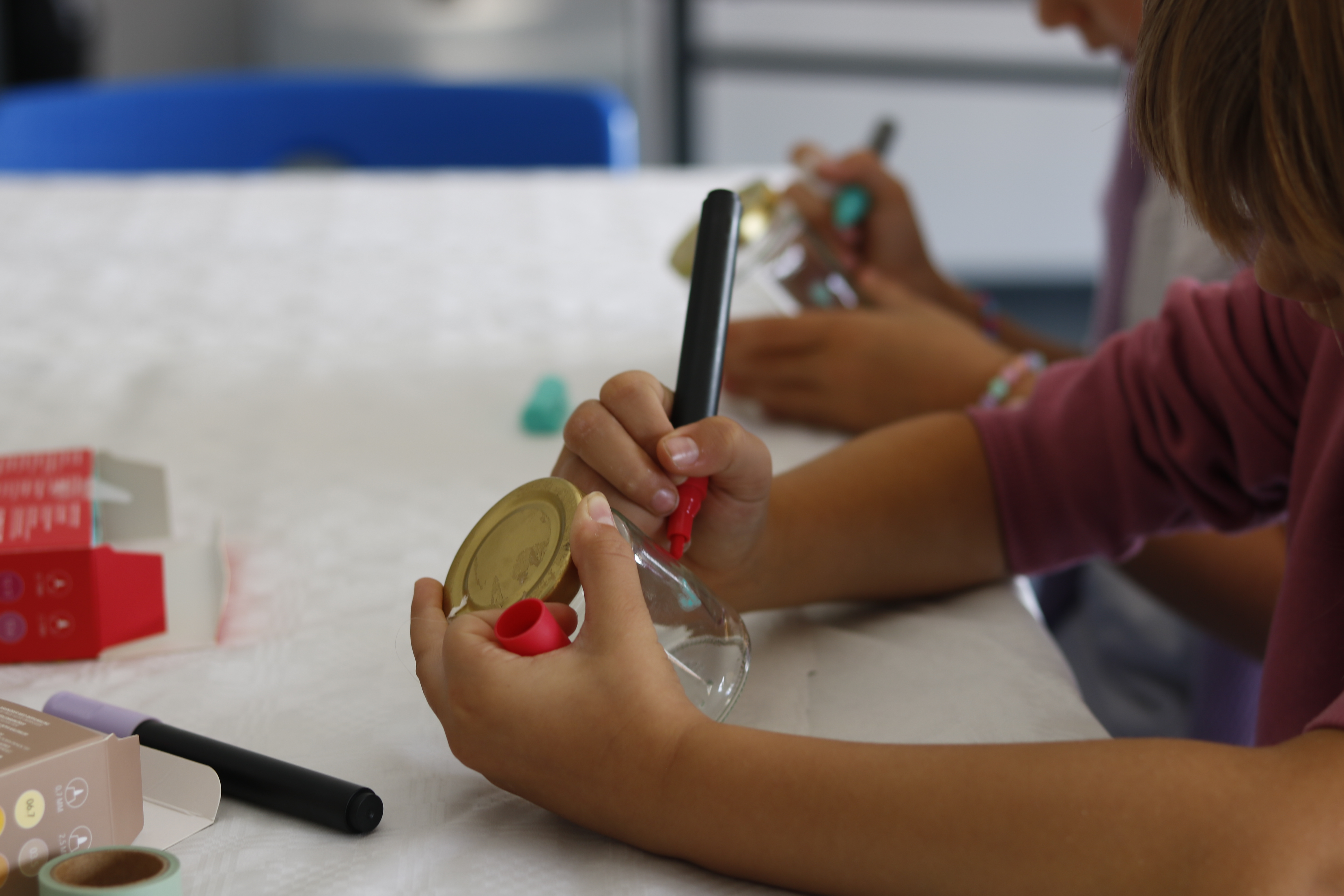 Neben dem kulinarischen Angebot standen gute Gespräche und gemütliches Beisammensein im Mittelpunkt. Kreative Aktionen wie das Basteln von Freundschaftsarmbändern oder das Gestalten von Marmeladengläsern mit Acrylstiften luden zum Mitmachen ein.