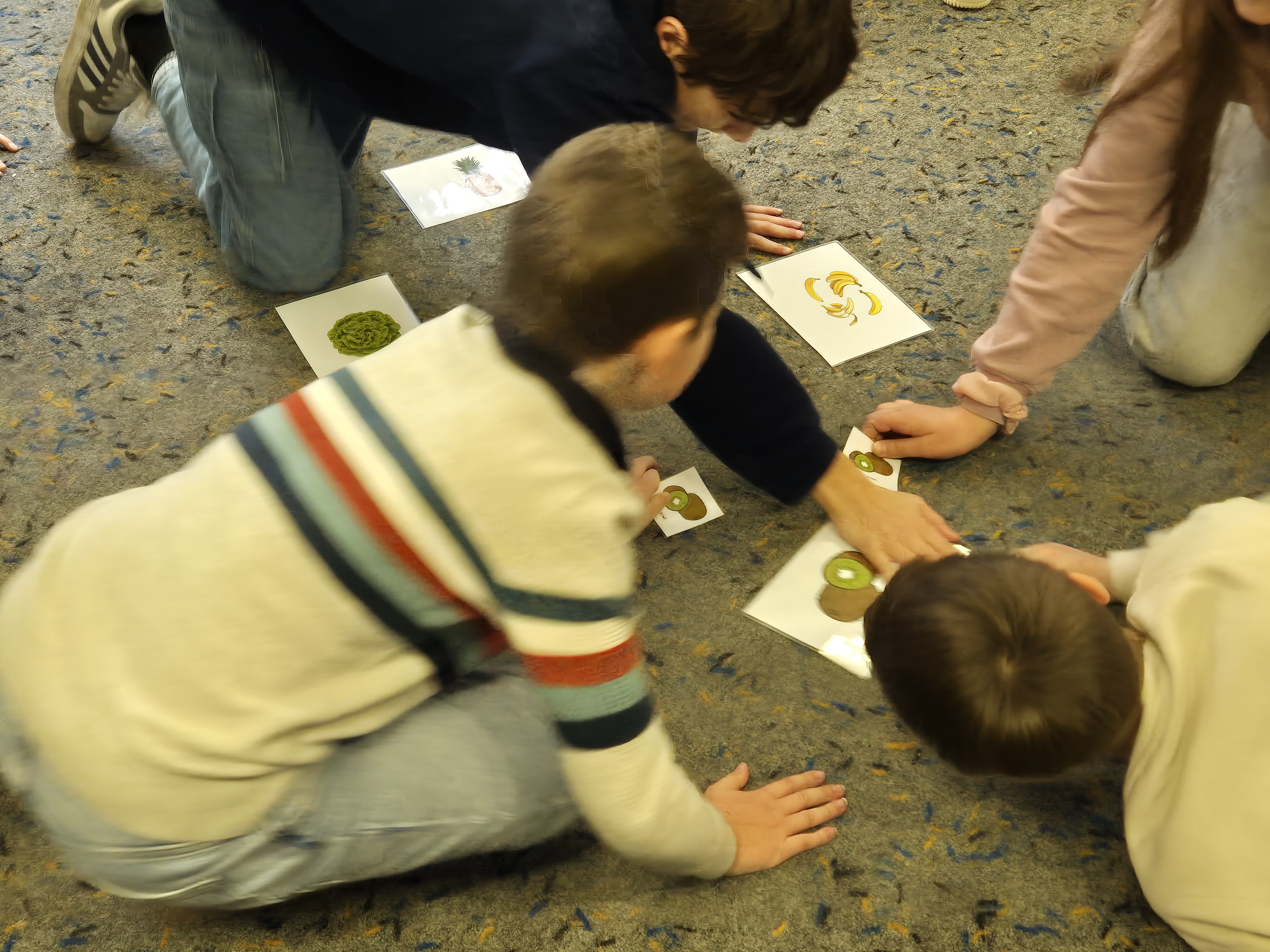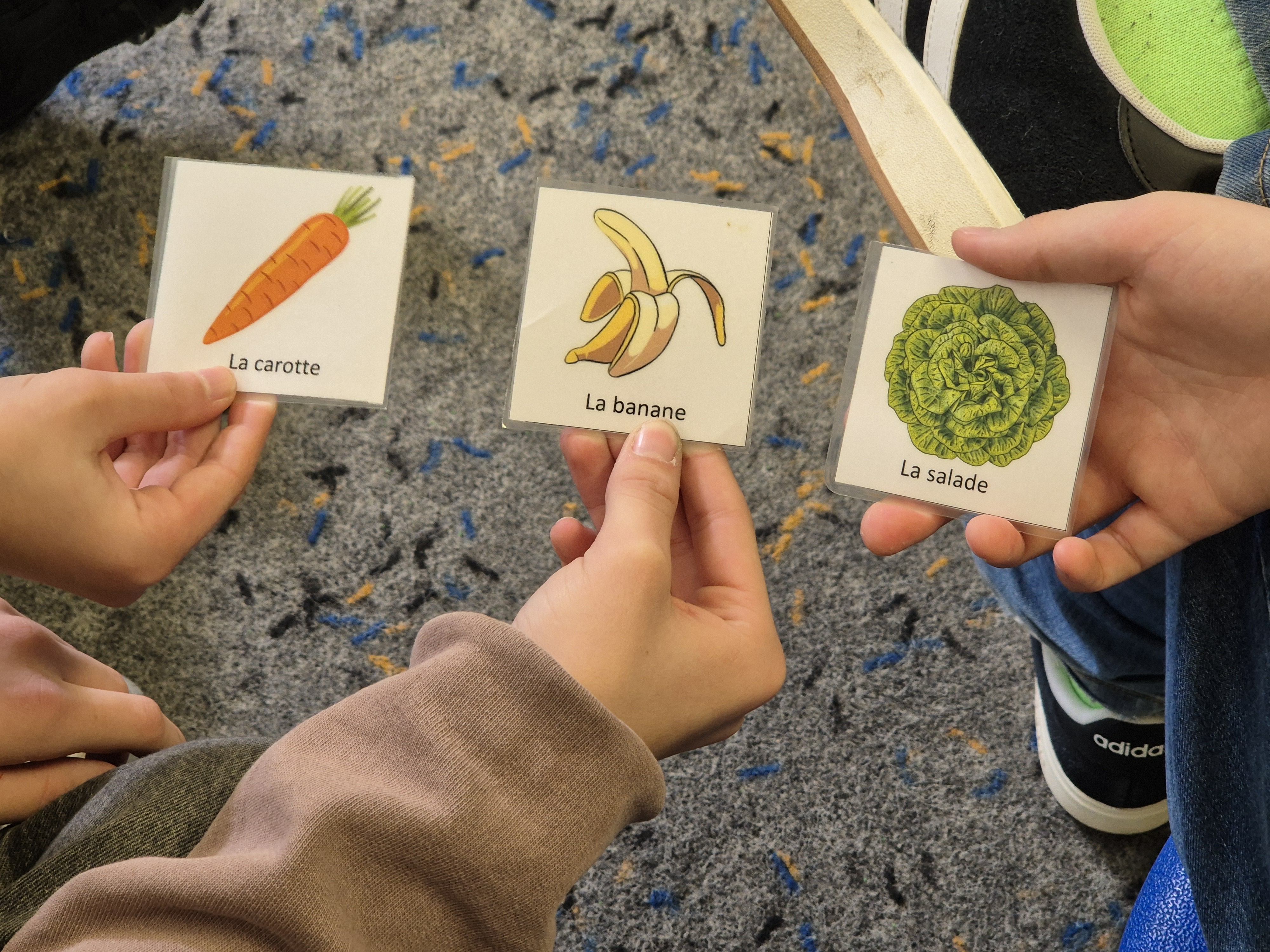 In einem Wettbewerb trat die Gruppe „baguette“ gegen die Gruppe „croissant“ an. Wer zuerst auf die entsprechende Karte tippte, wenn das französische Wort erklang, bekam den Punkt.